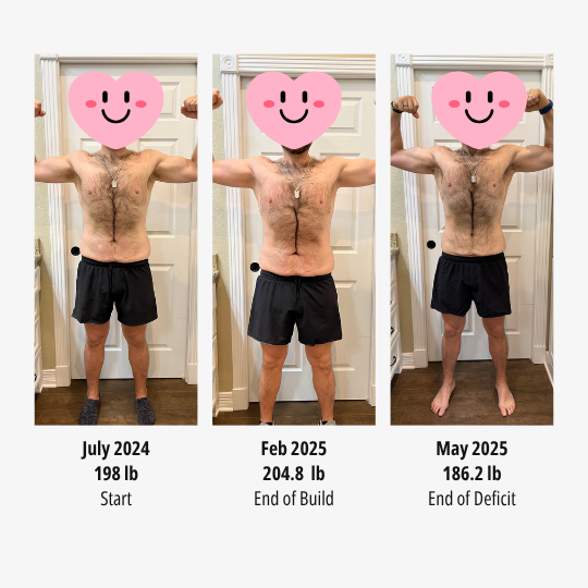 After the build, I moved into a deficit, and it was the easiest weight loss I’ve ever experienced. I ate more food in this deficit than ever, and the weight came off faster than expected.